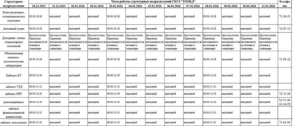 Дорогие друзья! Приближаются самые долгожданные праздники, и мы хотим, чтобы вы провели их спокойно. Сообщаем вам, как будет работать наш диспансер в праздничные дни.