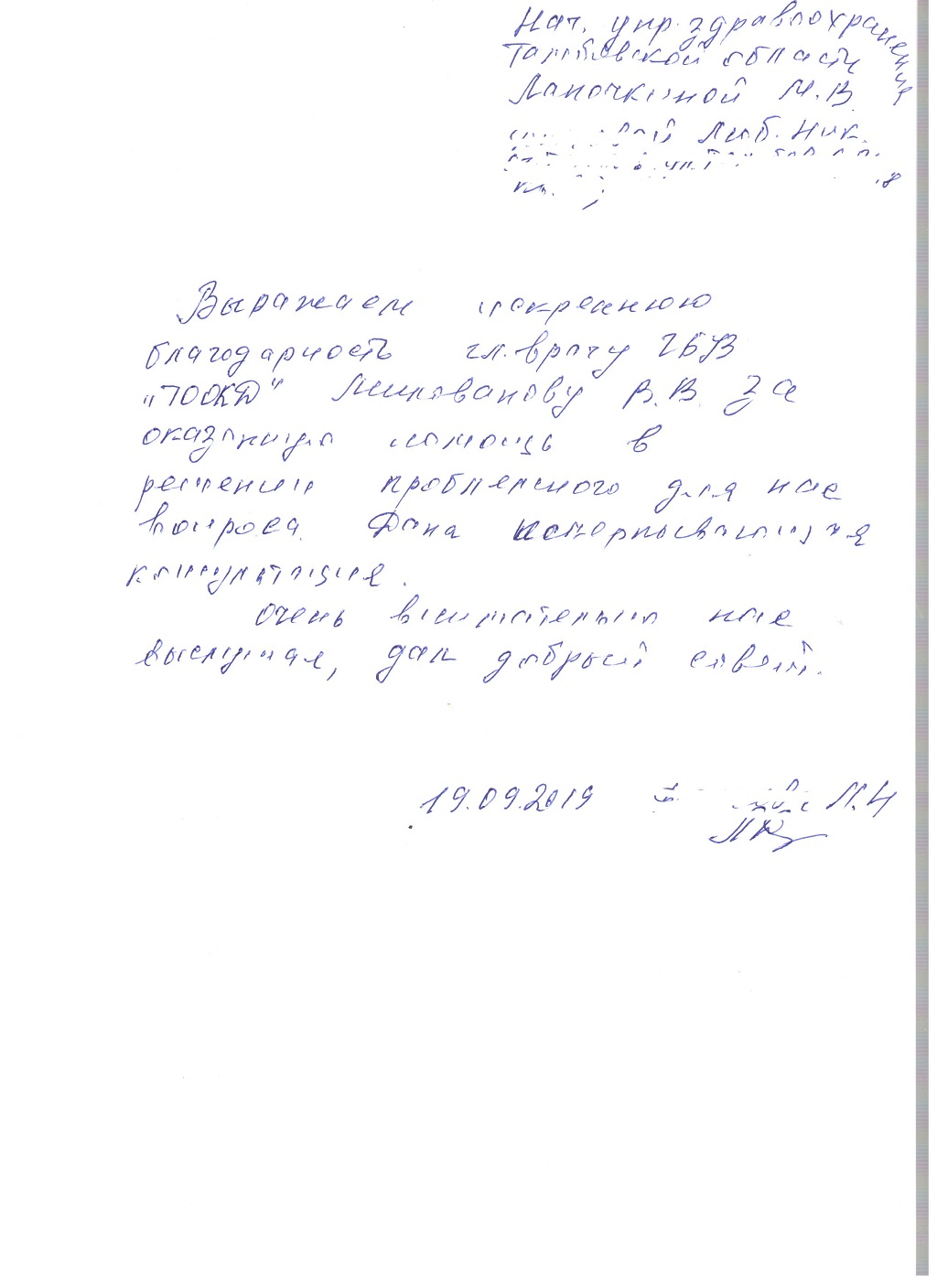 Благодарность главному врачу Владимиру Васильевичу Милованову
