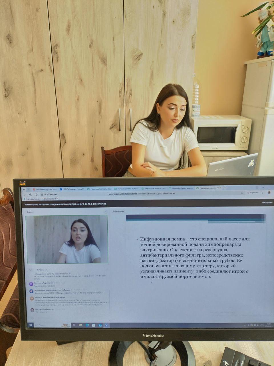 Впервые как докладчик, приняла участие в Семинаре молодой специалист - медицинская сестра 2 онкологического отделения ГБУЗ «Тамбовский областной онкологический клинический диспансер» Саблина Д. В., представила презентацию на тему: «Инфузионные помпы для химиотерапии», где были представлены виды помп, порт-систем, дана сравнительная характеристика, их плюсы и минусы в применении.