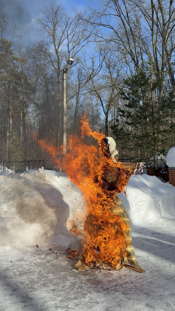 Программа выдалась насыщенной: гостей ждали веселые конкурсы, зажигательные танцы и душевное пение. Кульминацией праздника по доброй русской традиции стало сожжение чучела Масленицы — символа уходящих холодов.