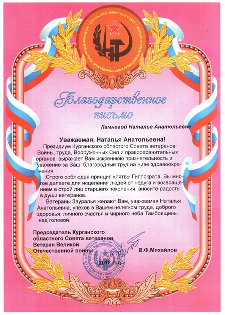 Благодарность Камневой Н.А.