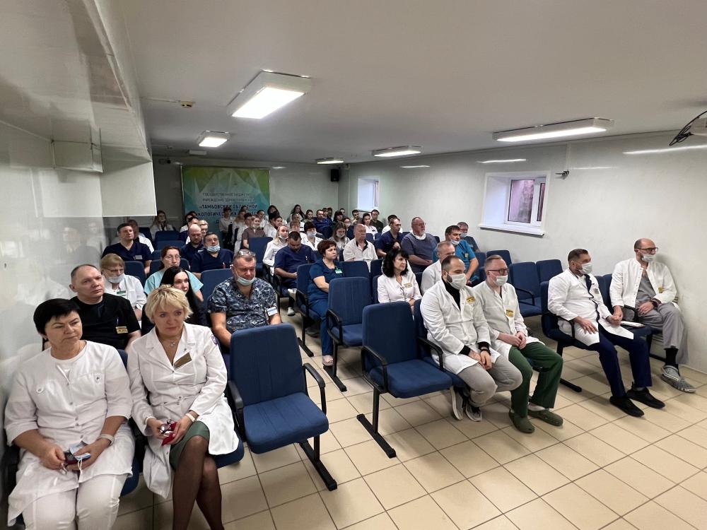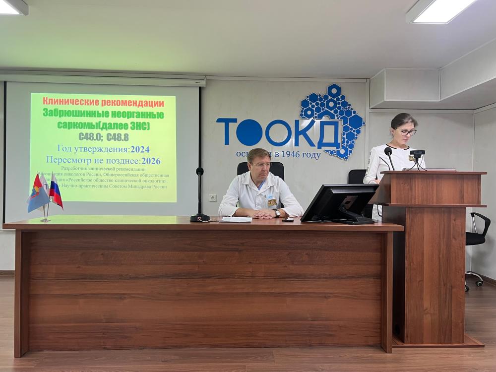 На еженедельной пятничной конференции врач-онколог Козлова Н.А. представила актуальные клинические рекомендации по ведению пациентов с забрюшинными неорганными саркомами (ЗНС).