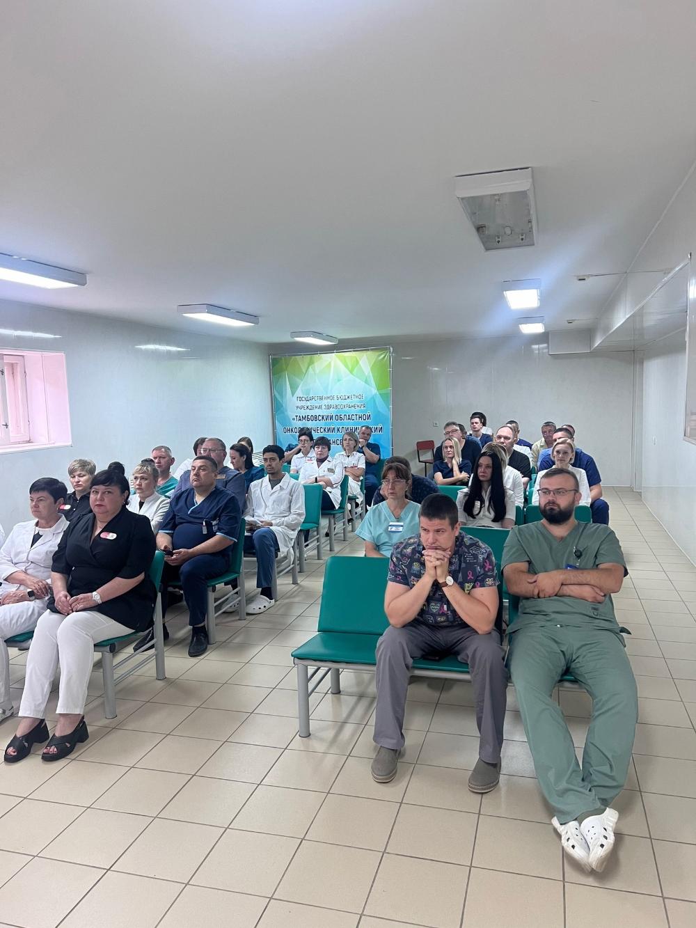21.06.2024 в ГБУЗ «ТООКД» прошла врачебная конференция, на которой выступил врач по рентгенэндоваскулярной диагностике и лечению Семёнов Павел Альбертович с докладом: «Обеспечение венозного доступа у пациентов с онкопатологией». Были разобраны виды венозного доступа, показания для имплантации периферически вводимого центрального венозного катетера (ПВЦК), туннелируемого катетера. Павел Альбертович отметил,что применение антикоагулянтов согласно рекомендациям RUSSKO не показано в рутинной практике, однако стоит учитывать тот факт что при использовании любых внутрисосудистых имплантов антикоагулянты являются обязательными к применению. Выражаем благодарность докладчику за полезную информацию для коллег!